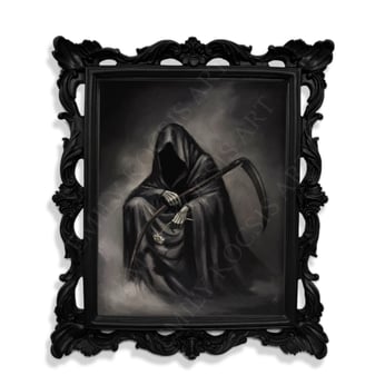 Original Painting Print // ‘Grim Reaper’ Holding Daisy in Oil