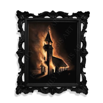 Original Painting Print // ‘Hymn of the Damned’ Burning Church in Oil