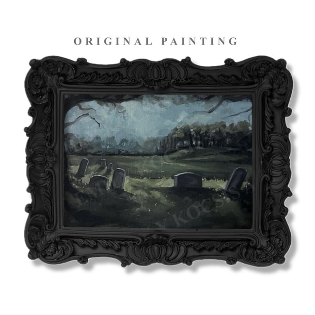 5x7 Original Moody Cemetery Oil Painting //Choose Framed or Unframed (Black or Bronze)