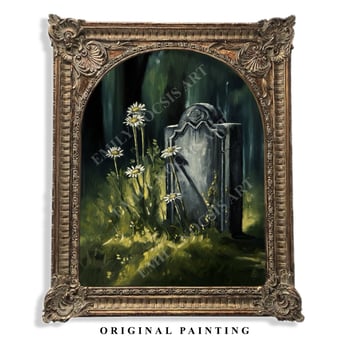 Original 8x10 Oil Painting Headstone & Daisies // Choose Framed or Unframed Black or Bronze